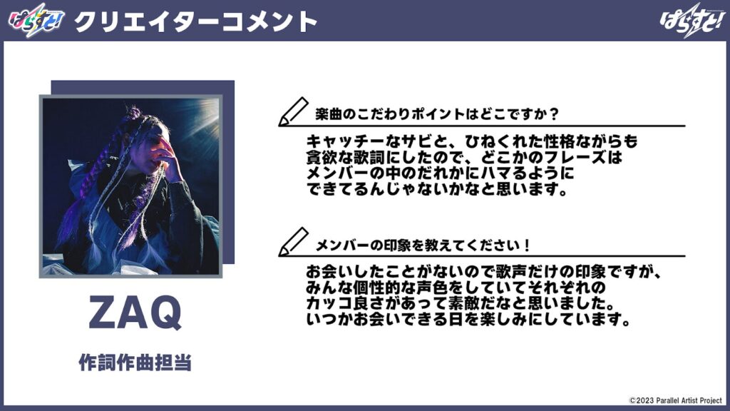 自身もアーティストとして活躍するアニソン界屈指のクリエイター「ZAQ」による渾身の楽曲「Paranormal Cluster」の提供が決定!