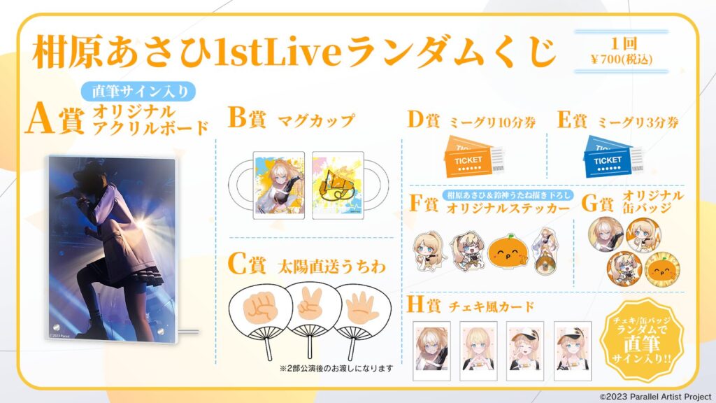 さらに1会計20,000円ご購入いただくたびにお好きなグッズに柑原あさひが直接特典会でサインいたします!